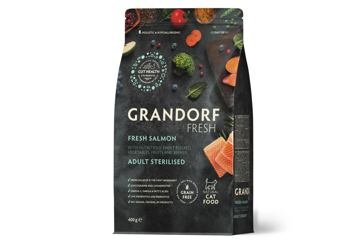 Grandorf FRESH SALMON & SWEET POTATO ADULT CAT STERILISED - Сухий корм для стерилізованих котів лосось з бататом, 400 г